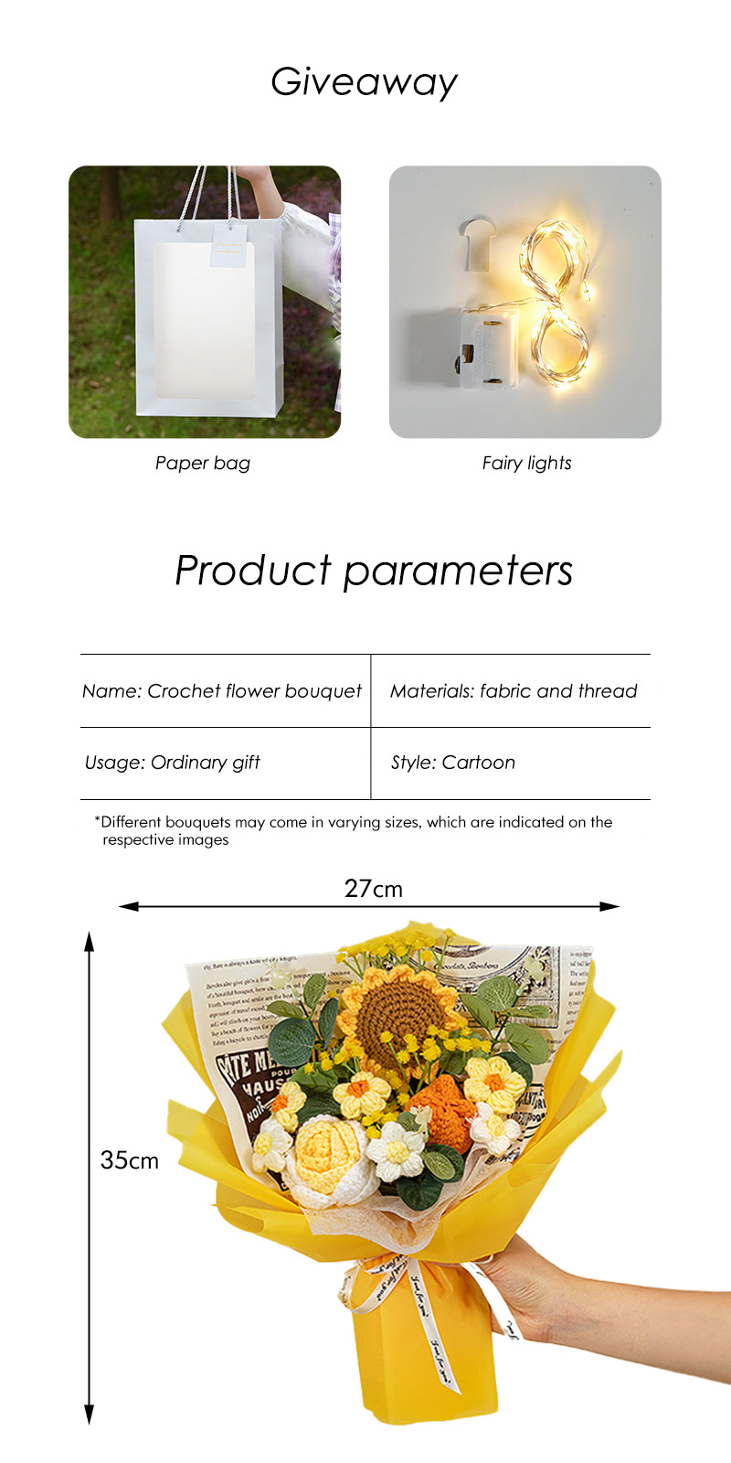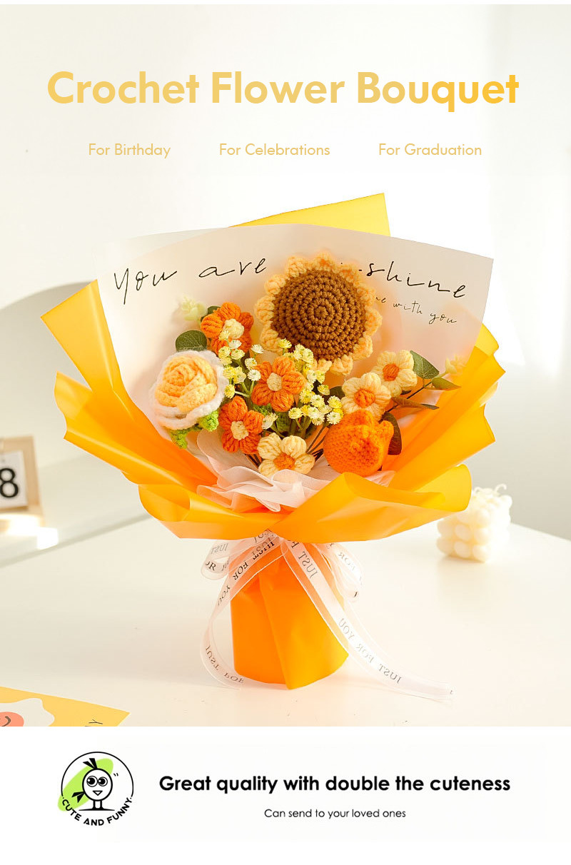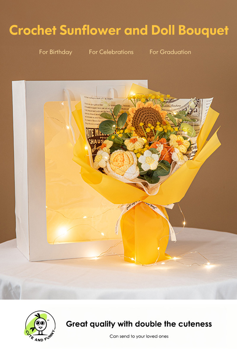 [SG Stock] Cute and Funny Big Sunflower Knitted Mixed Flower Bouquet for Wedding House Warming Graduation Gift