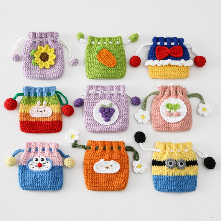[SG Stock] Cute and Funny Handmade Crochet Drawstring Pouch Coin Purse Earphone Bag Jewelry Key Bag Mini Gift Bag