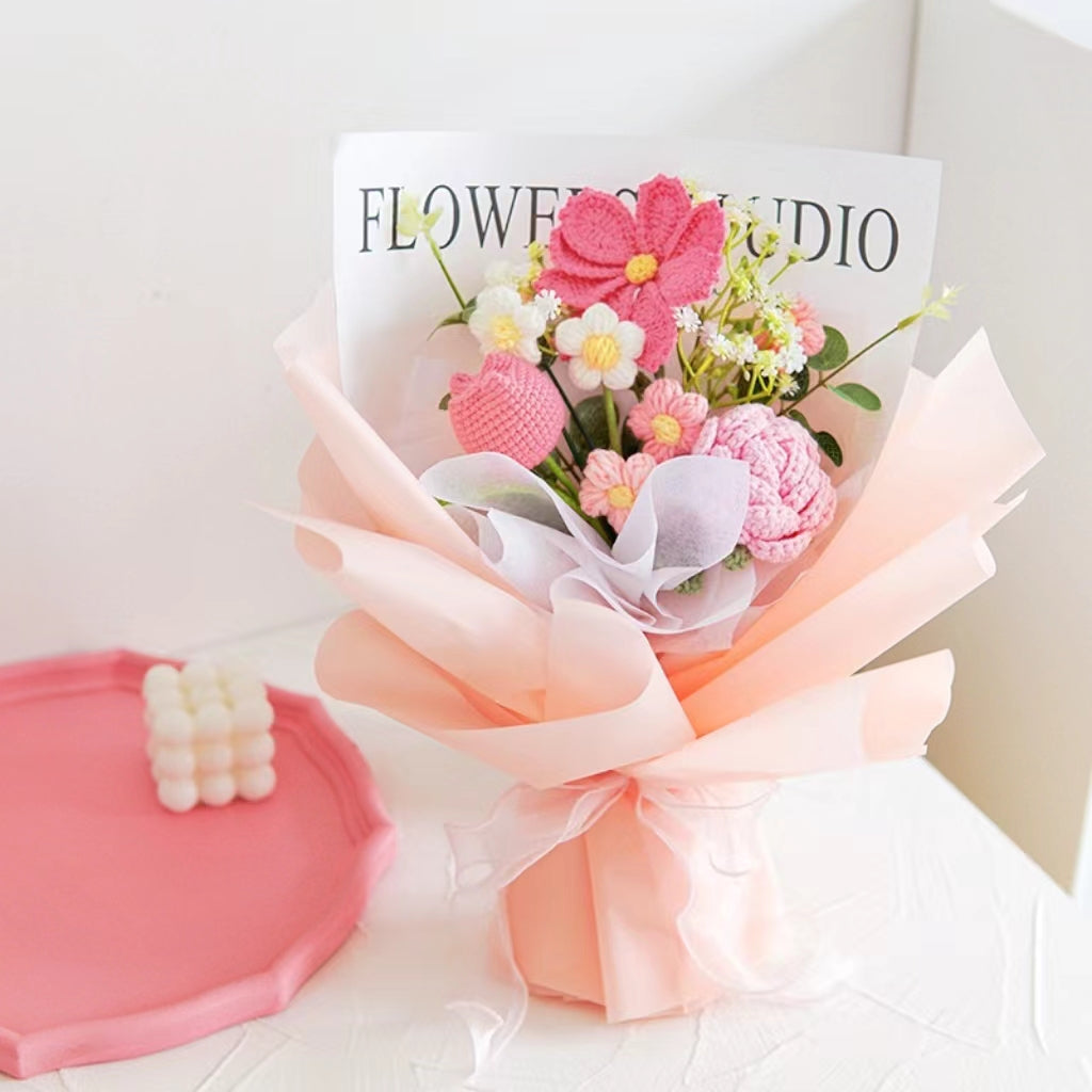 [SG Stock] Cute and Funny Roses Knitted Wool Bouquet Woolen Flower for Wedding House Warming Graduation Gift