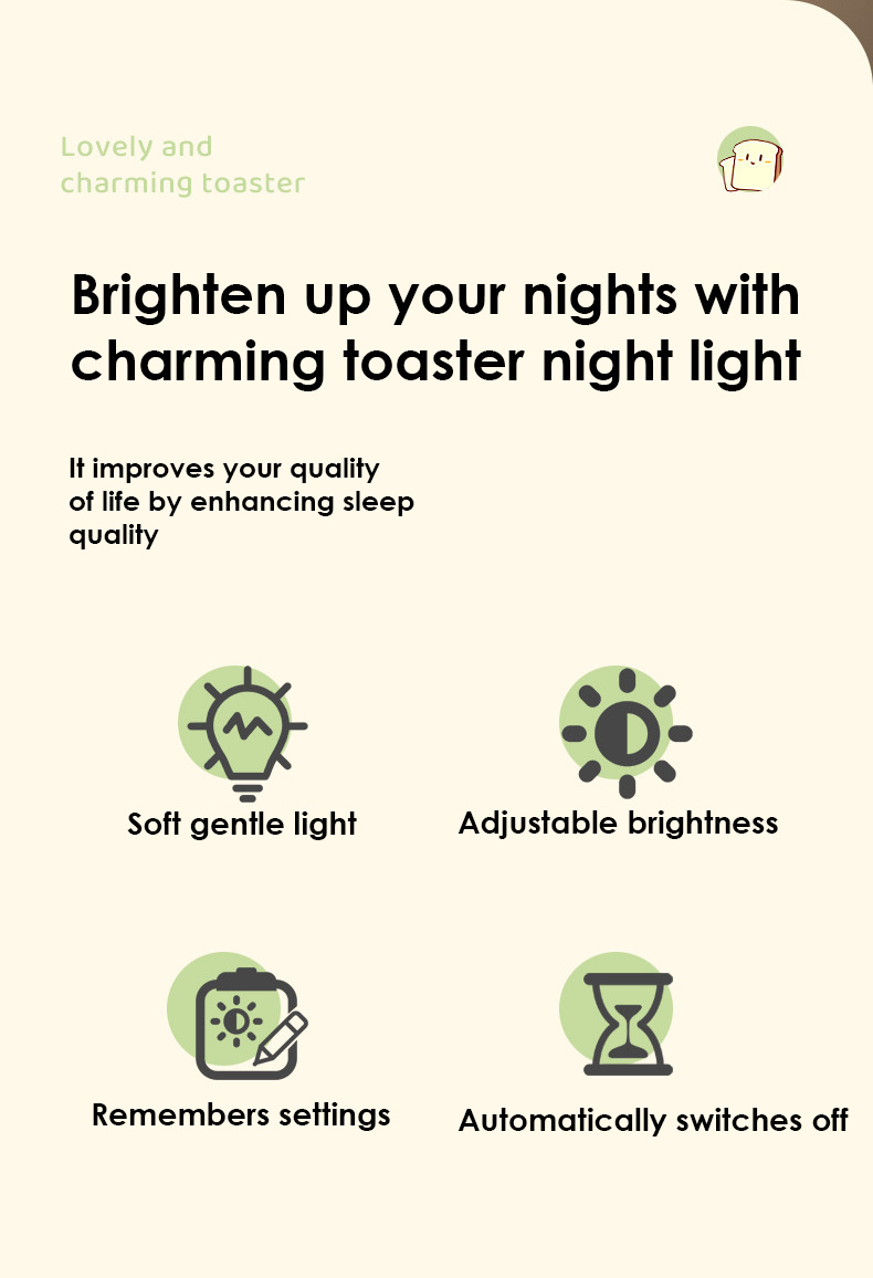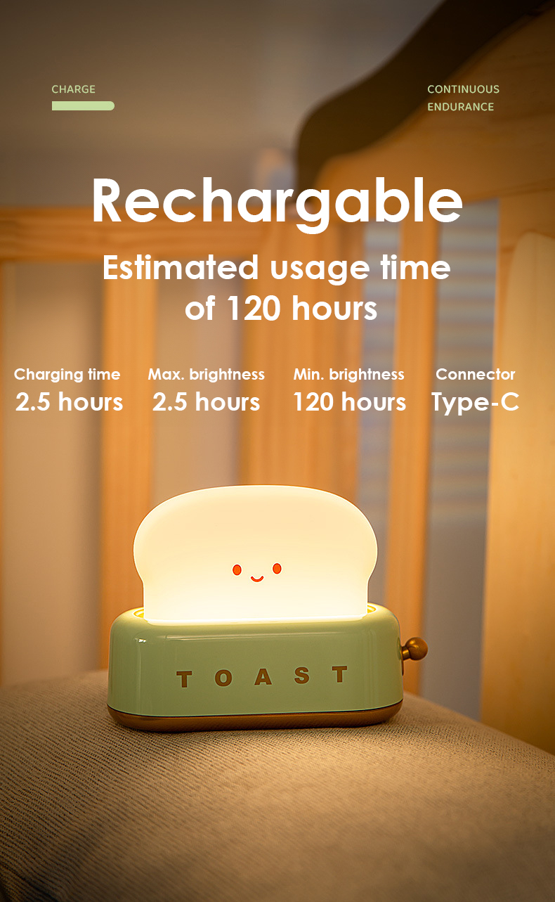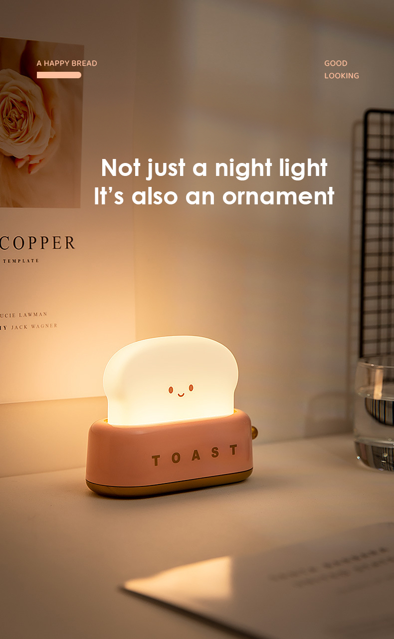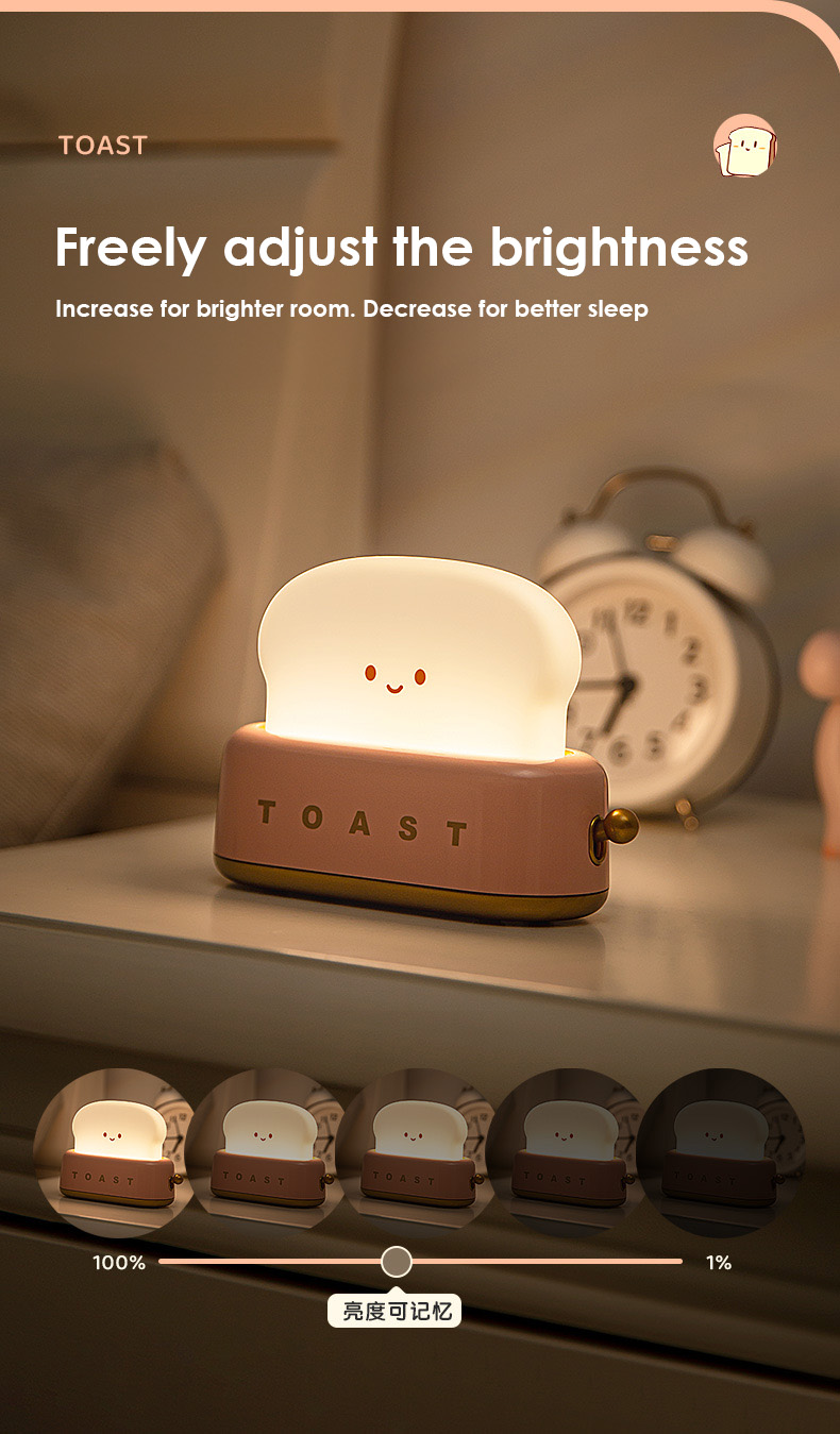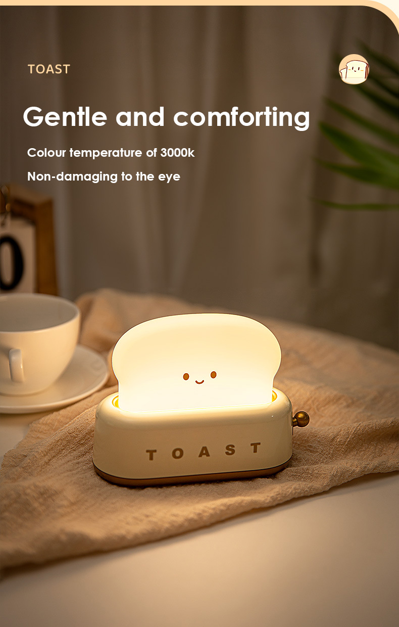 [SG Stock] Cute and Funny Toast Night Light for Kids Rechargeable and brightness adjustable 可爱吐司 面包机 小夜灯 USB充电 亮度可调节